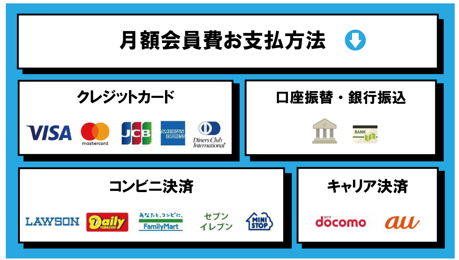 会員費のお支払方法は下記の中からお選びいただけます。
